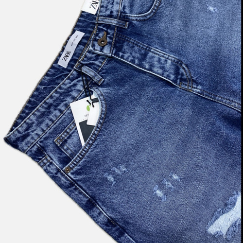 شلوار جین نیم بگ آبی کد 3799